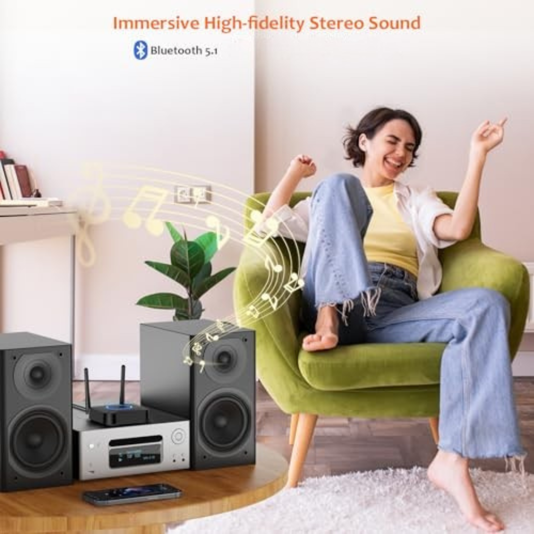Dual antennas ensure a strong, uninterrupted signal, while the built-in Hi-Fi DAC delivers rich, detailed sound quality. Perfect for home theaters, cars, or music systems that deserve a wireless boost.